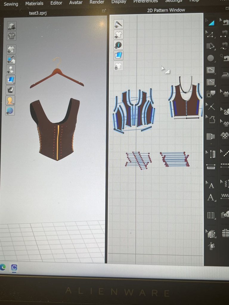 During my experiments, I came up with the idea of creating a corset with CLO3D. The images above showcase the stages involved in constructing the corset. It is evident that there is still considerable room for enhancement in the final outcome. I will try to improve by continuing to practise with this software.
