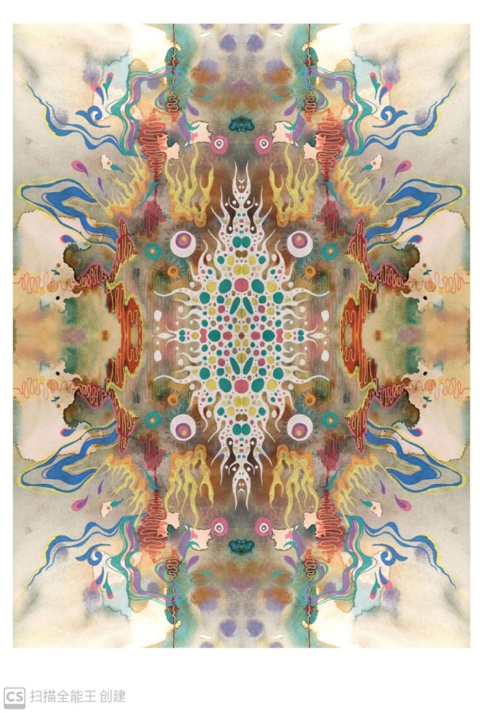 In the current project, I extract motif of the highlights of the water crease. I got my colour pallet from water that reflect colourful light hence I am using this pinkish colour as my background. There are two background I had tried, one is fully covered with water colour shown as above. The other one is the partially covered with water colour merged with a lot of water on paper. I drawn this in a small scale with only a quarter. I then scan my work and mirrored them in photoshop hence creating this mirrored effect.